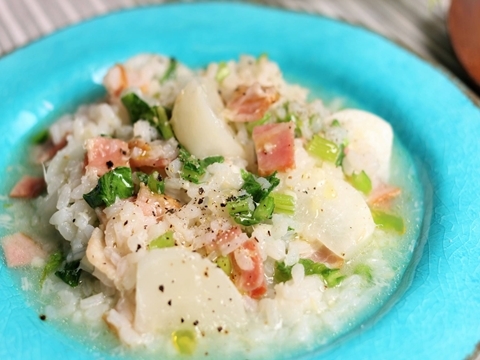 シメには体にも優しい「かぶとベーコンのリゾット」♪