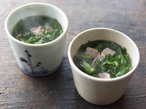 忙しい時には「刻み春菊とベーコンのスープ」なんていかがでしょう?