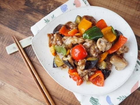 材料は通常の酢豚の具材に加え、しいたけとなすを加えてヘルシーにボリュームアップしました♪