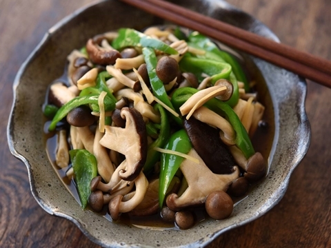 今日は「たっぷりきのことピーマンのさっと煮」!