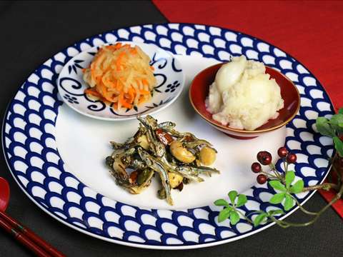 おめでたい「紅白なます」や、ゆり根とさといもを使った上品な「白いきんとん」をワンプレートに。