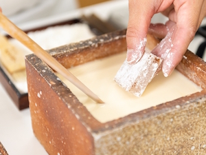 STEP5に打ち粉(小麦粉)をして天ぷら衣につける。