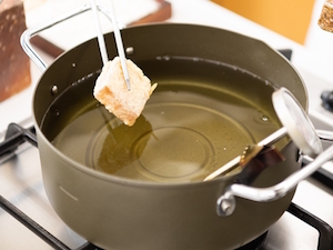 STEP6をひまわり油で揚げる。油の温度は170~180℃で30秒。