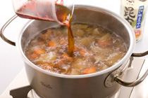 3. STEP2「ヤマサ昆布つゆ」を加え、1~2分ほど煮ます。
