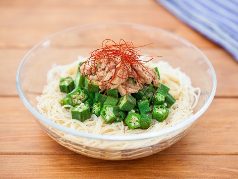 おくらとツナのさっぱり昆布ぽん酢そうめん