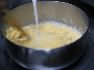 卵を溶きほぐし、STEP4に細く回し入れ、水溶き片栗粉でとろみを付ける。