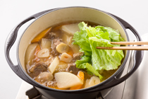 STEP3にふたをして弱火で15分~20分煮て、最後にSTEP1のレタスを加えて火を止めます。