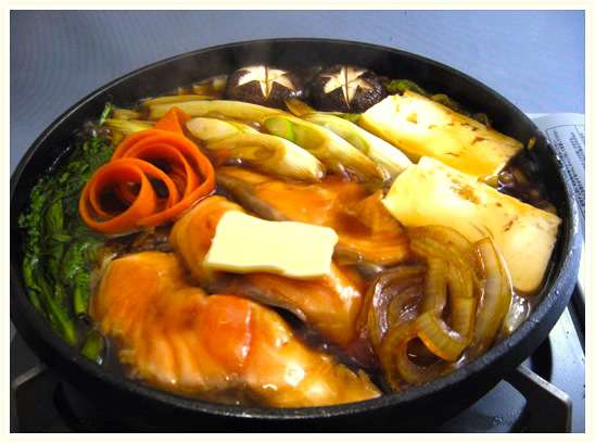 - 鉄鍋に「ヤマサすき焼専科」を入れて煮立て、STEP1、STEP2、バターを入れて火の通ったものからいただく。